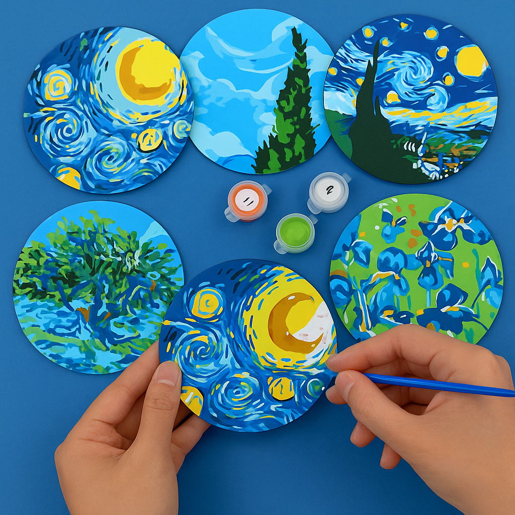 Este set de posavasos para pintar por números une creatividad y funcionalidad en una experiencia relajante y muy gratificante.