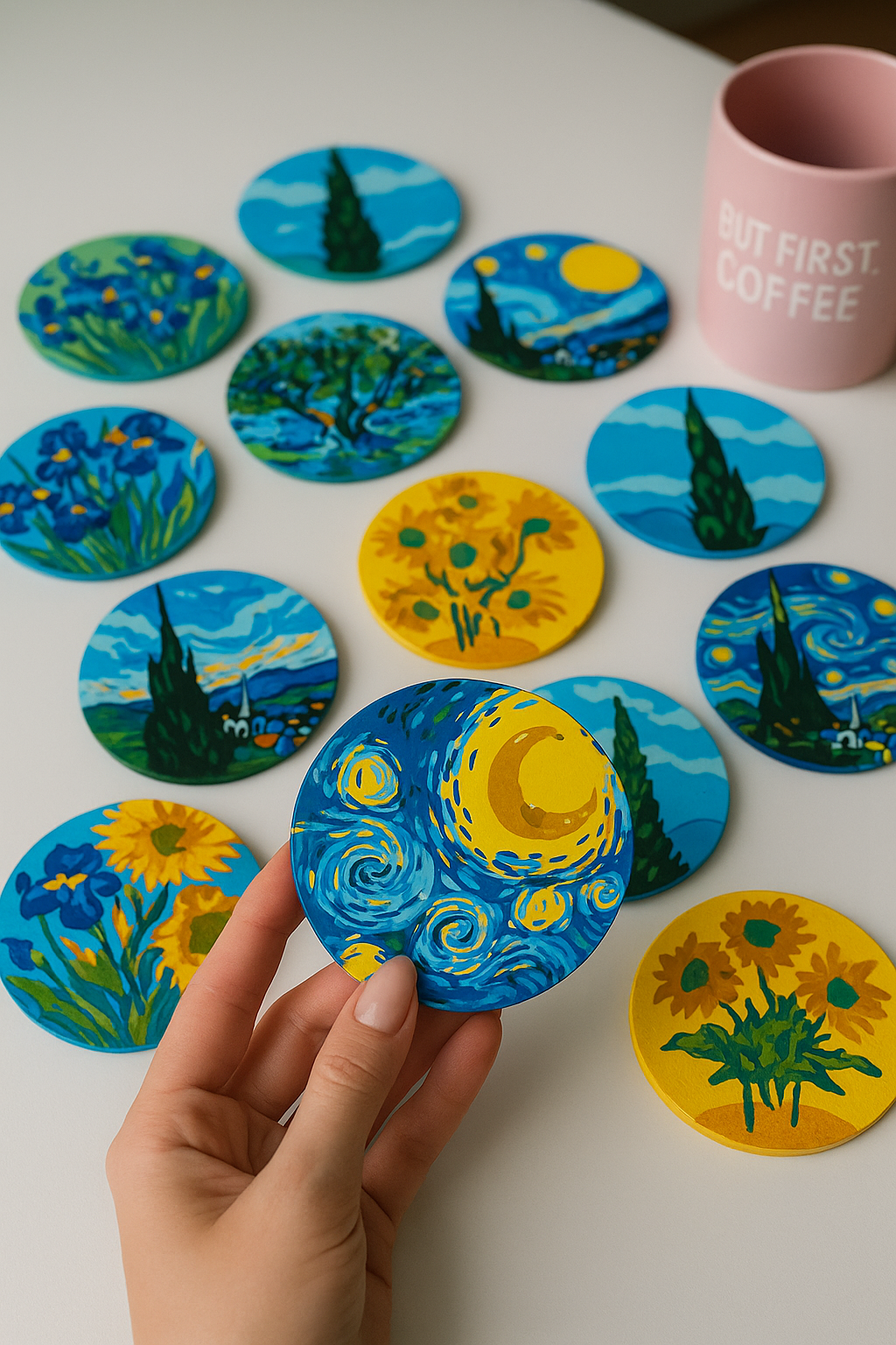 Cada posavasos viene con el diseño numerado para que pintar sea fácil, fluido y agradable, incluso si no tienes experiencia previa.